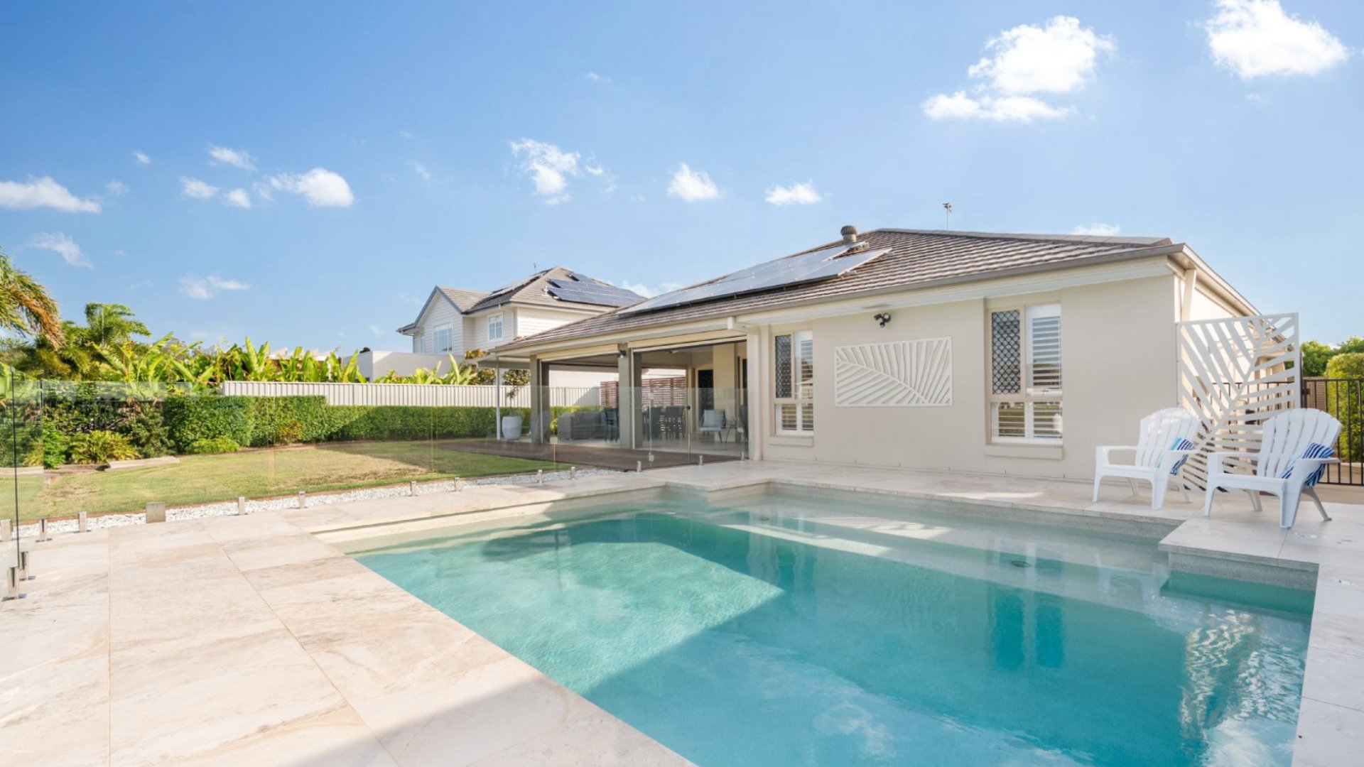 A modern waterfront escape with a massive pool, private pontoon and effortless access to the Pumicestone Passage — the ultimate Banksia Beach boating getaway.